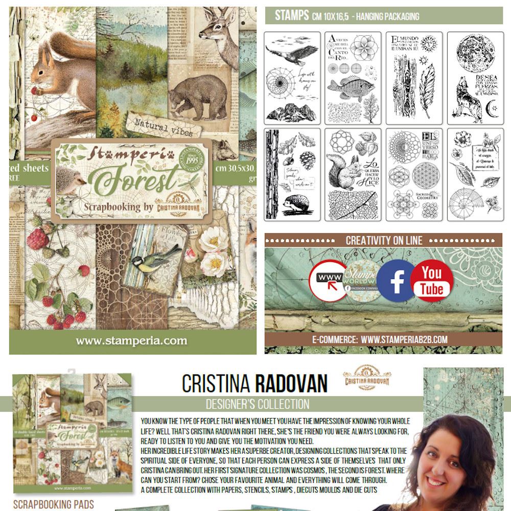Collezione Forest di Stamperia ideata da Cristina Radovan. Ecco una collezione completa di carte, stencil, timbri, fustellati che parlano al lato spirituale di ognuno, affinché ogni persona possa esprimere un lato di sé.